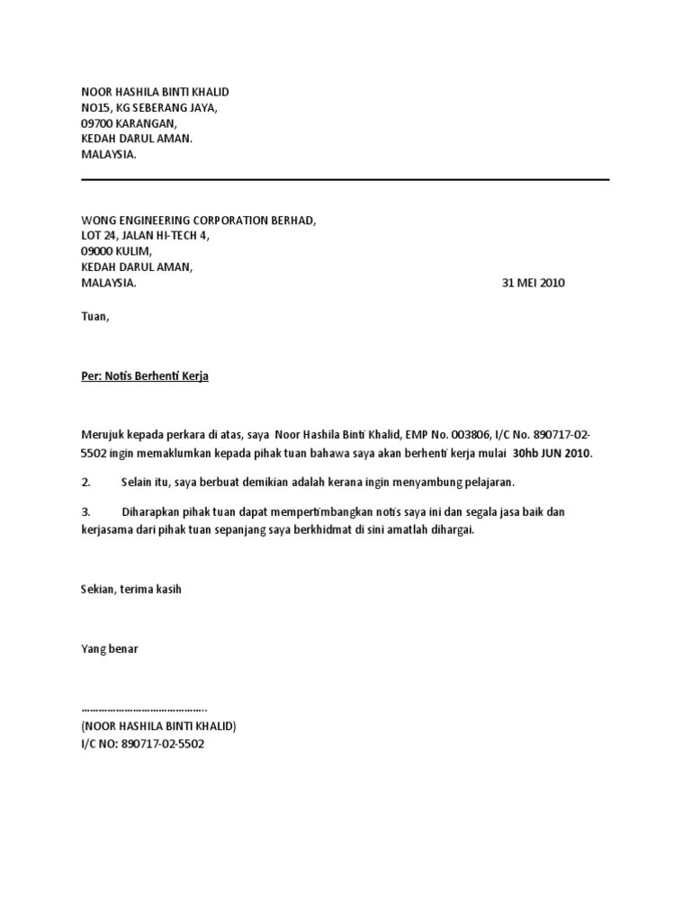 Surat berhenti kerja contoh atau tempoh notis perletakan jawatan samada 24 jam ataupun 1 atau 2 dan mungkin 3 bulan biasanya bergantung kepada kontrak yang .